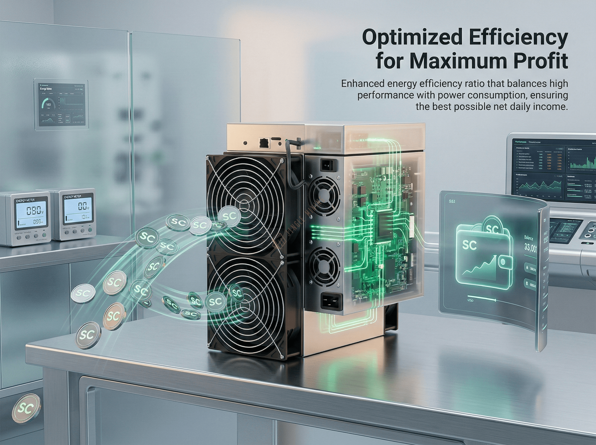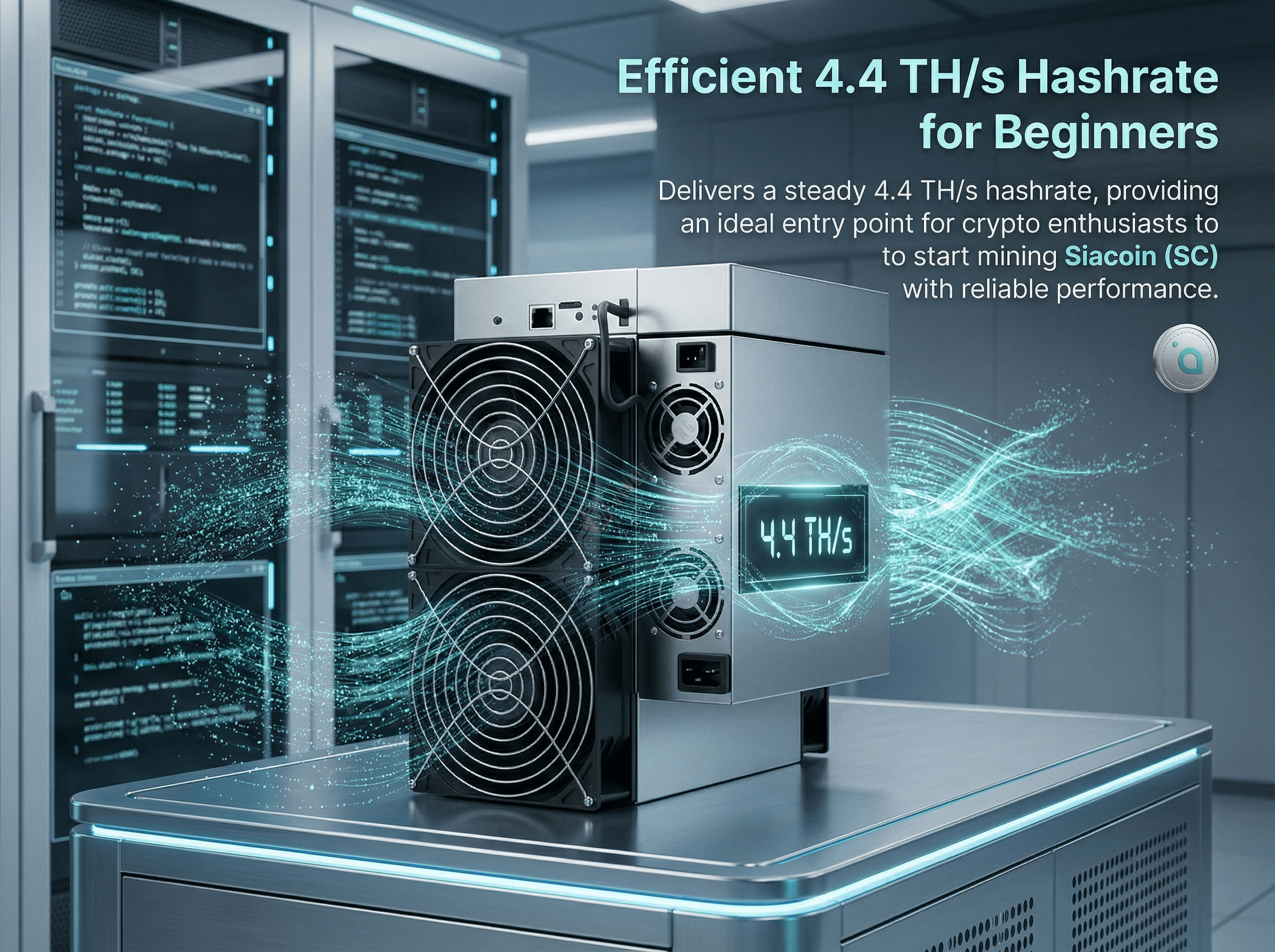 Boasting a maximum hashrate of 4.4Th/s and power consumption of 950W, this high-hashrate low-power miner achieves an industry-leading energy efficiency ratio of 0.216j/Gh, slashing your low electricity cost while maximizing mining profits. Designed for optimal performance and stability, the SC mining device fits perfectly into home & small-scale applications, catering to individual home miners, small-scale mining enthusiasts and crypto hobbyists alike. It supports Ethernet mode for easy setup miner operation, and comes packed with ≤55dB low-noise operation, remote APP control like quiet mining device design for a seamless user experience.