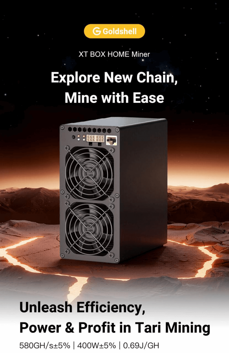 Goldshell’s first ASIC for TARI follows Goldshell’s classic BOX design—compact, flexible, low-noise, and energy-efficient—making it well-suited for most household users as well as certain small-scale sites.