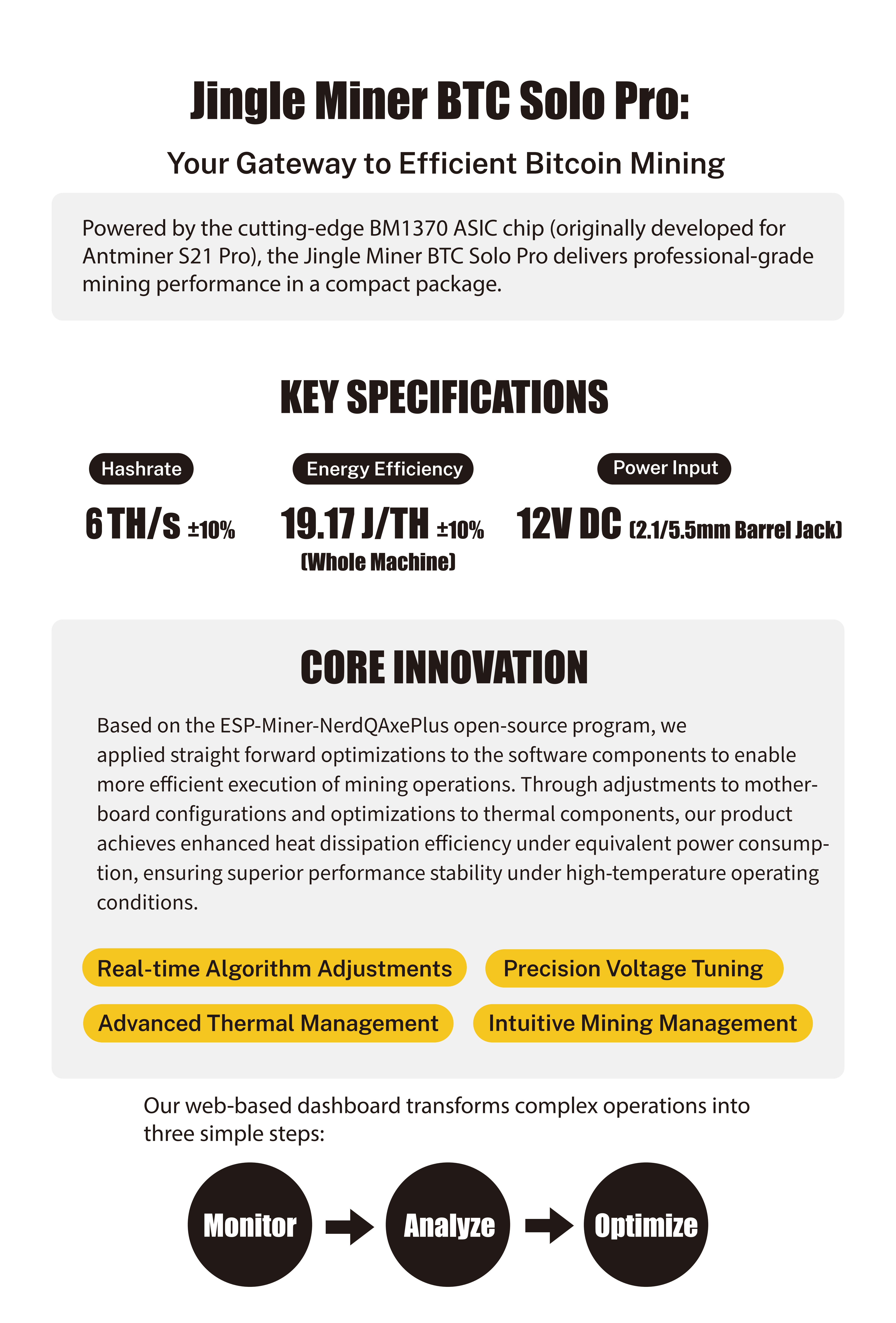 Jingle Miner BTC Solo Pro RGB Edition is a factory-direct high-performance SHA-256d algorithm miner engineered for efficient BTC mining. It is available at competitive discount price with exclusive limited-time offer for bulk order and wholesale price clients, delivering unbeatable value for both personal and commercial mining needs.