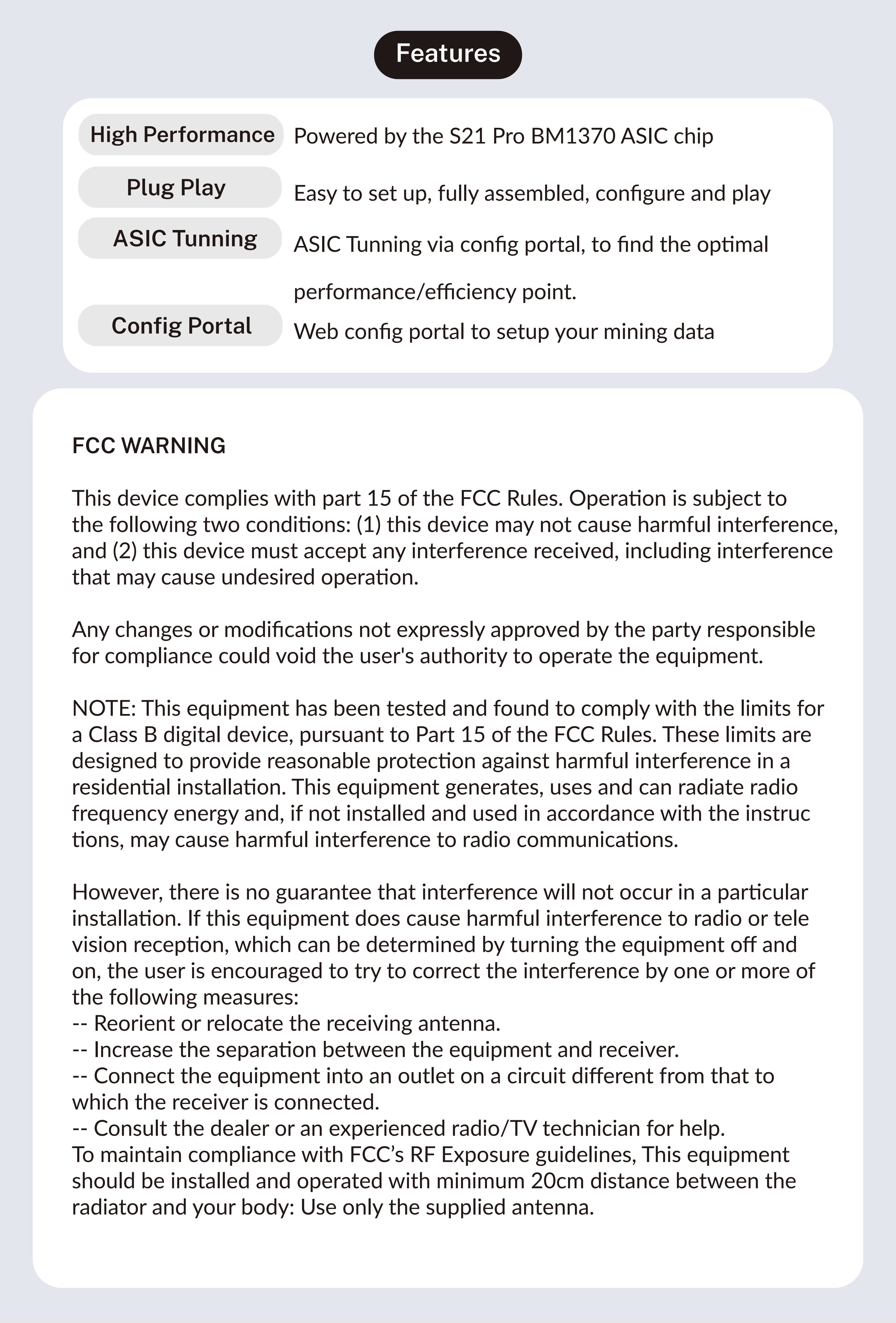 Boasting a maximum hashrate of 6.00Th/s and power consumption of 120W, this high-hashrate low-power miner achieves an industry-leading energy efficiency ratio of outstanding energy efficiency ratio, slashing your low electricity cost while maximizing mining profits. Designed for optimal performance and stability, the BTC mining device fits perfectly into home & small-scale applications applications, catering to individual home miners, small-scale mining enthusiasts and crypto hobbyists alike. Equipped with Other standard power cord and global voltage support, it supports Wi-Fi for easy setup miner operation, and comes packed with optimized for quiet & stable operation like quiet mining device design for a seamless user experience.