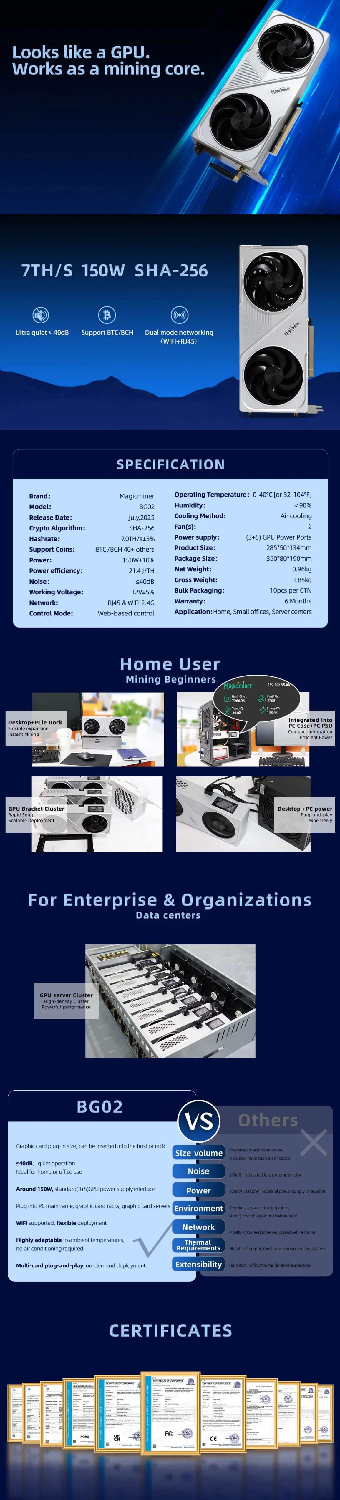 Backed by a 180-day warranty and reliable after-sales support, this energy-efficient crypto miner ensures long-term, hassle-free operation. Contact us for custom bulk quotes - whether you're buying a single unit for home use or placing a large order for industrial operations, the Magicminer BG02 is your top choice for profitable crypto mining.